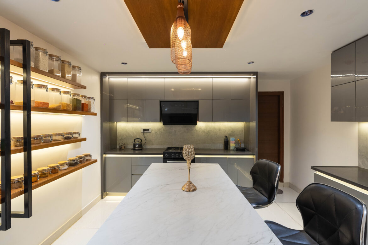 Ample Storage: Indian kitchens tend to have a lot of utensils, spices, and ingredients. Maximize storage with pull-out drawers, deep shelves, and overhead cabinets. Consider dedicated sections for grains, pulses, and spices. We at Dekanhaus start by surveying your existing kitchen, your storage and buying patterns and give a design solution accordingly.